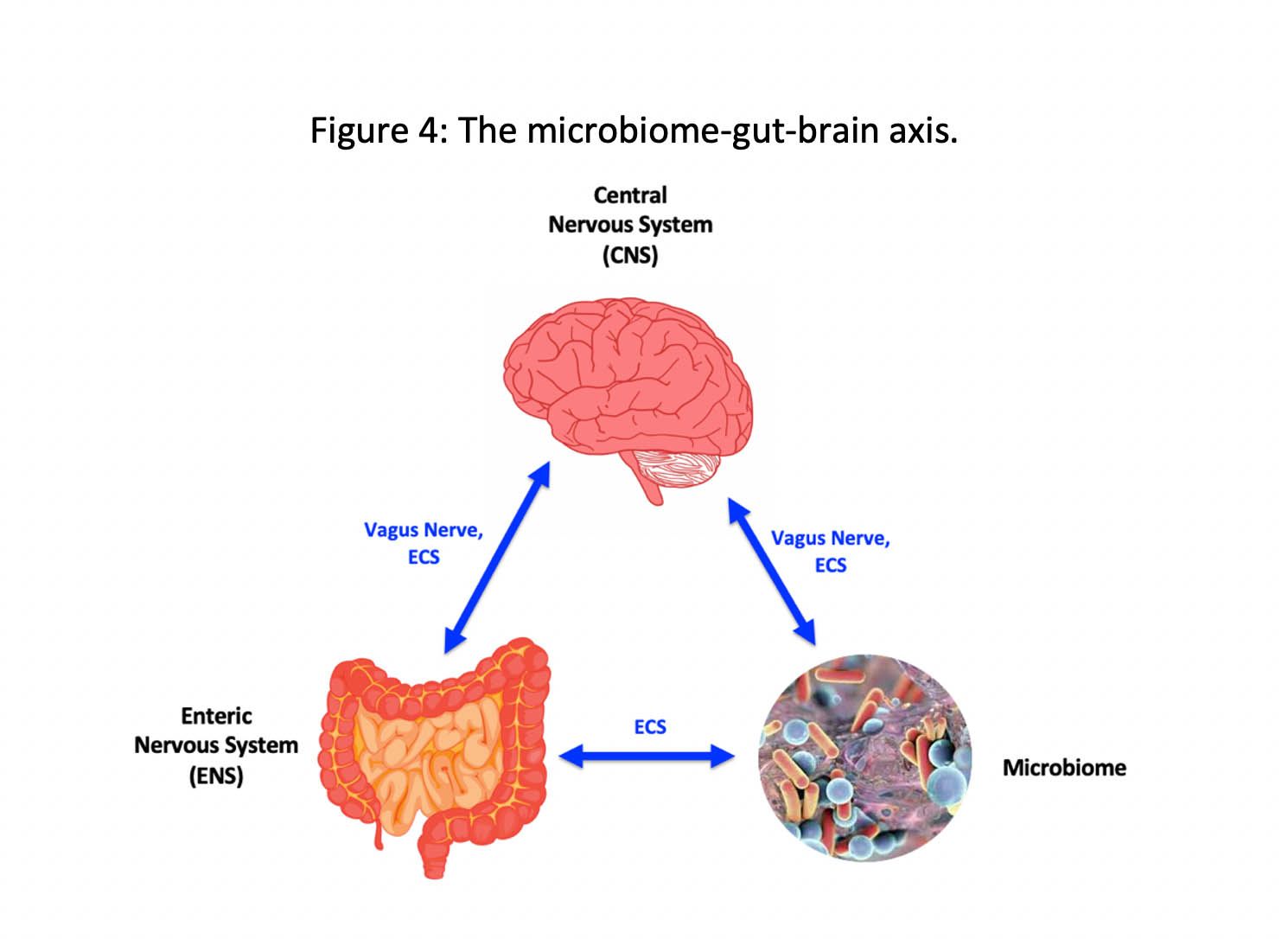 Interestingly, the endocannabinoid system (ECS) has been found to be active in moderating activity in the ENS, the CNS, and the vagus nerve, and it has been found to be active in moderating communications between the microbiome and the host. The ECS has previously been described as being central to human health as its role in serving as the master regulator of homeostasis in the body (3). It could then further be said that the ECS is central to moderating human health through another avenue: the mind-body connection.