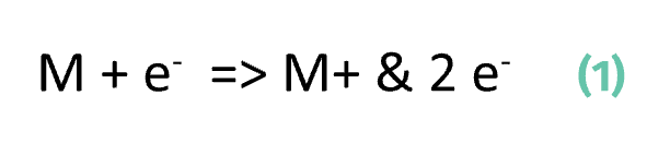 Previously, we discussed how electron impact ionization is used to generate ions [1]. The process can be thought of as a chemical reaction as seen in equation 1, where M=molecule and e-=electron: