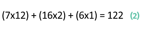 Assuming again that carbon has an atomic mass of 12, oxygen 16, and that hydrogen’s is 1, we can calculate the molecular mass of benzoic acid as seen in equation 2: