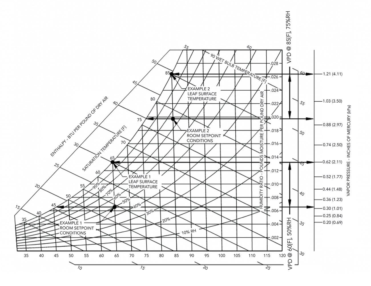 It is understood that proper HVAC equipment design is necessary to keep consistent temperature and relative humidity within a space. It is also generally recognized that the plant growth is impacted, both positively and negatively, by space temperature and humidity and therefore vapor pressure deficit. What is often overlooked or unknown is that small changes in temperature and humidity setpoints can have an imperceptible impact on the vapor pressure differential, and a large impact on the size, first cost, and operating costs of the HVAC system.